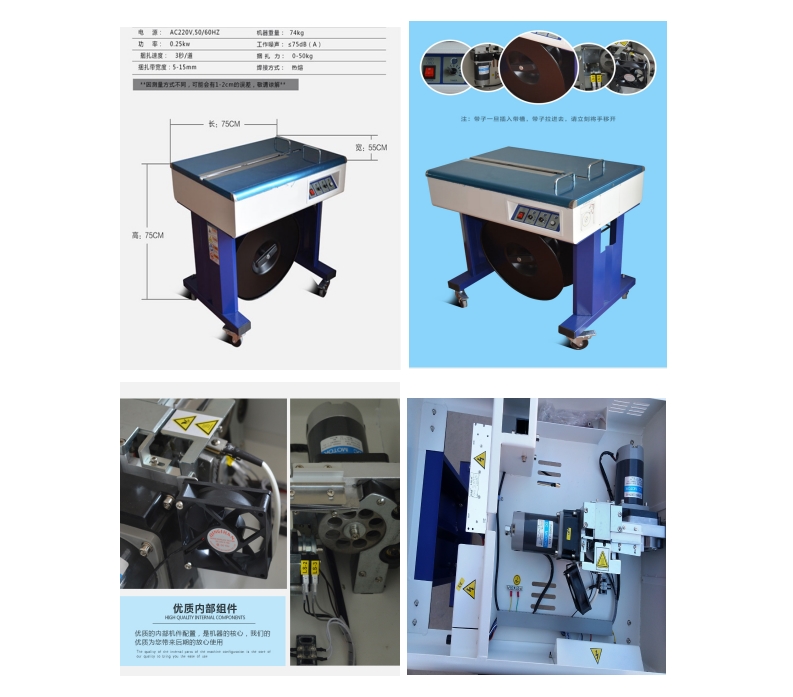 半自動(dòng)打包機(jī)(雙電機(jī))采用自動(dòng)電熱熔接,捆扎速度快、省時(shí)省力、接口平整牢固,能提高產(chǎn)品包裝外觀的檔次。雙電機(jī)半自動(dòng)打包機(jī)捆緊力度,出帶長(zhǎng)短都可調(diào),靈活適用于諸多行業(yè)捆扎使用。如產(chǎn)品包裝效率要求比較快可以選用全自動(dòng)打包機(jī)也可以配合自動(dòng)封箱機(jī)使用方便便捷為工廠提高包裝速度。
