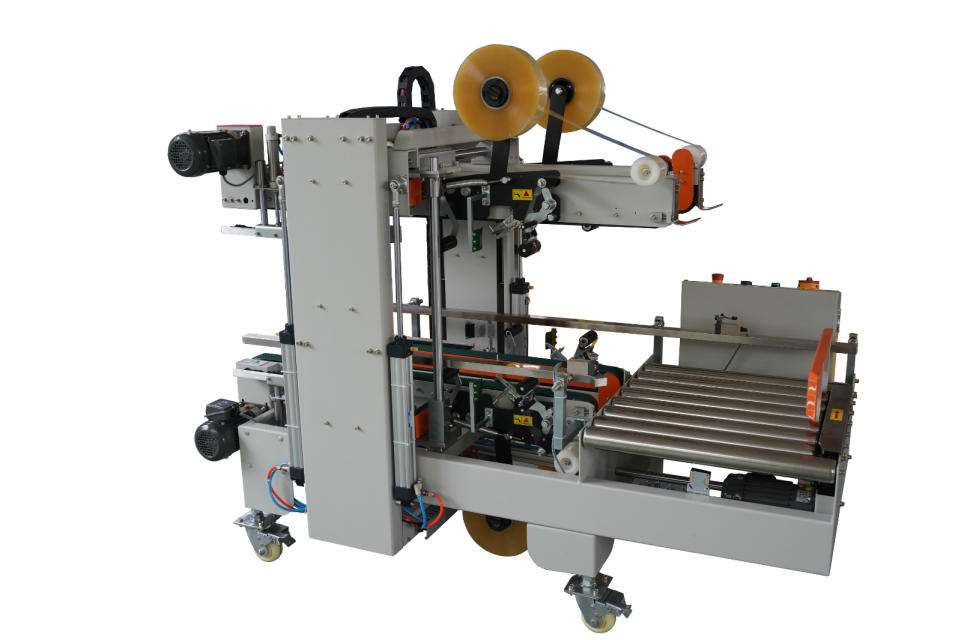 紙箱封箱機作為常用的封箱設備之一,它的工作原理就是接上電源插頭,打開電源開關,機器開始運轉,此時手折好箱蓋并推動箱子,到達上下動力裝置位置時,上下動力皮帶帶動箱子通過機芯封箱裝置進行自動封箱,機芯上刀片自動切斷膠帶紙,后壓箱輪貼上箱子后面,完成整個封箱過程。