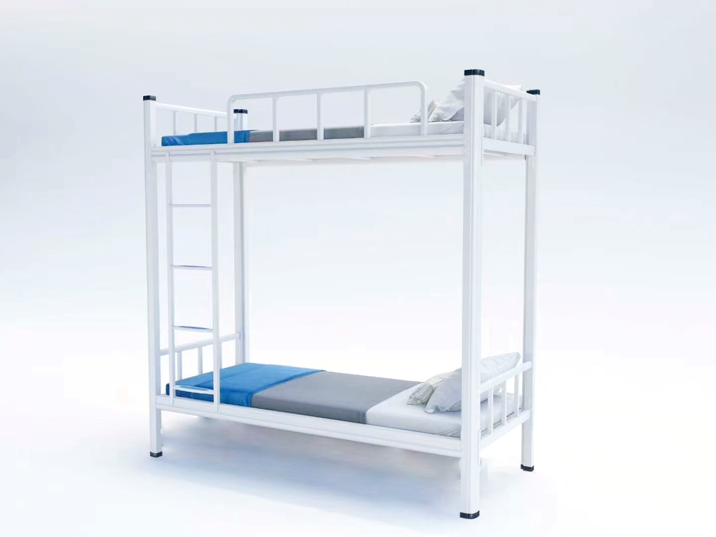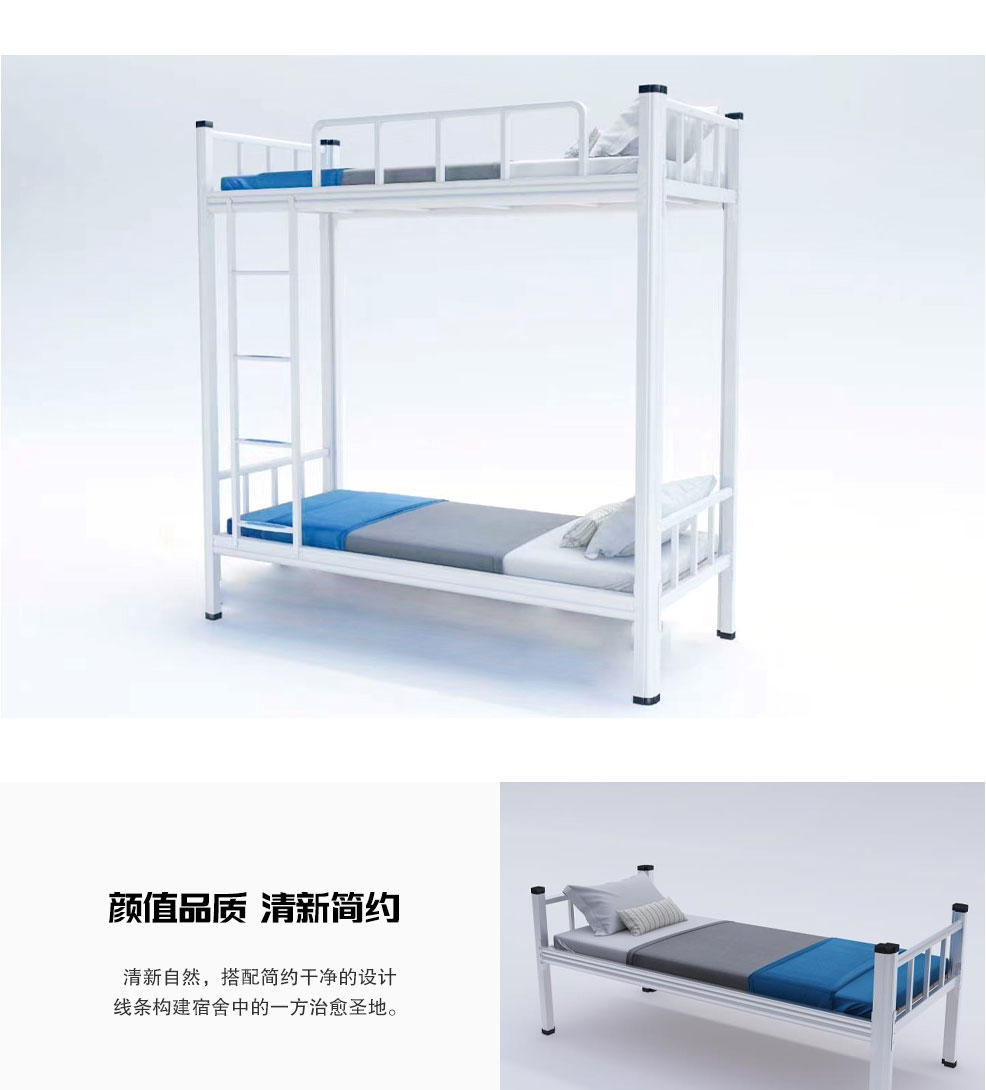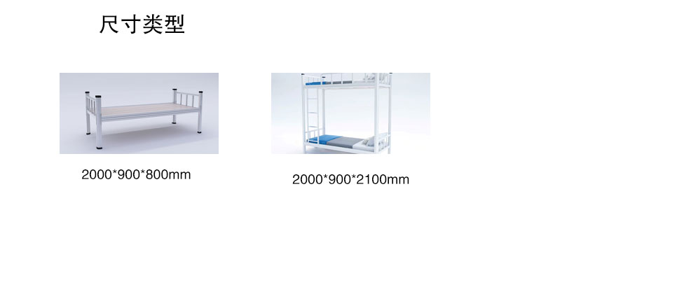 二連3人位公寓床1.整體規格:L4110*W900*H2120mm/2900mm,;2.邊立柱:采用(V65閉口型材),料厚1.2mm的閉口型管材,立面8個。立柱上下兩端口安裝工程塑料靜音內塞,上端內塞...