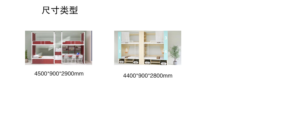 二連3人位公寓床1.整體規(guī)格:L4110*W900*H2120mm/2900mm,;2.邊立柱:采用(V65閉口型材),料厚1.2mm的閉口型管材,立面8個(gè)。立柱上下兩端口安裝工程塑料靜音內(nèi)塞,上端內(nèi)塞...